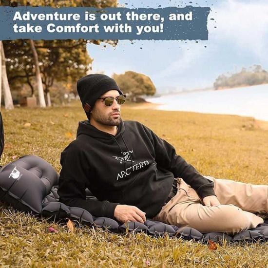 You no longer have to blow the sleeping pad hard. Thanks to the design od built-in foot pump, our camping sleeping pad could be inflated in 45 seconds.It will make more saving-time and saving-effort for you to inflate it when you want to use it. You will save more inflation time: more economical, faster and more hygienic. Our new valve features of the sleeping pad a one-way expansion over a large contraction valve that facilitates expansion and contraction! Note: The other pillow should be inflated by mouth.