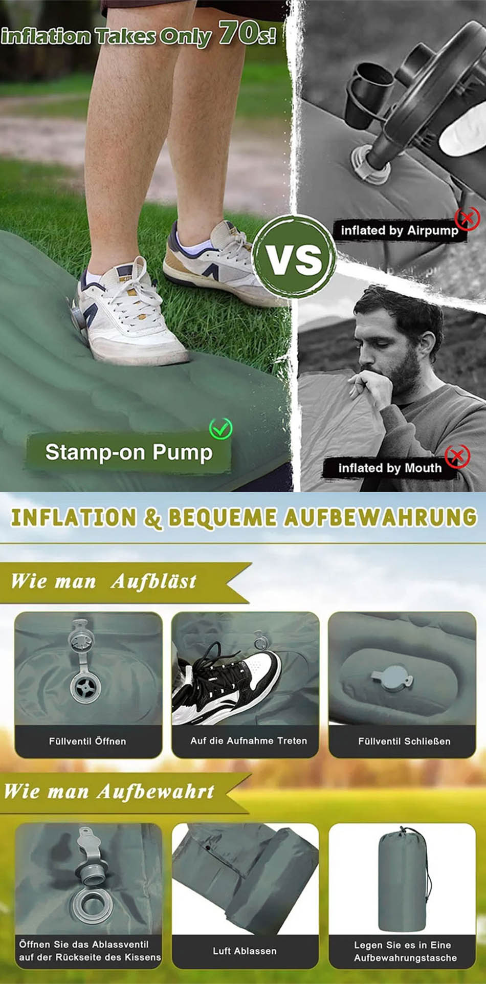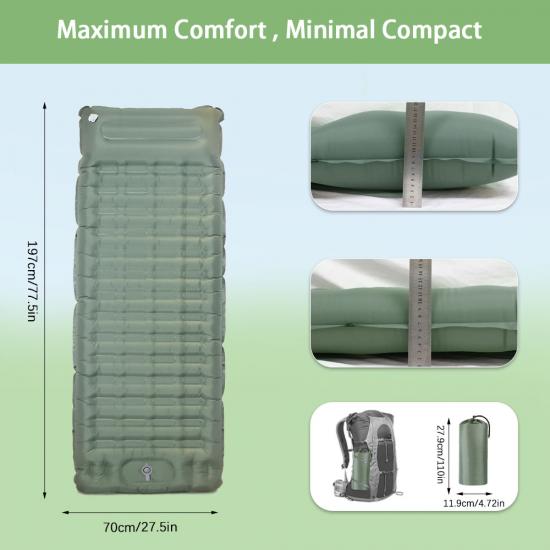 Product: This lightweight camping inflating mat offers comfort and support for outdoor adventures, making it the perfect travel sleeping pad for hiking, camping, or backpacking trips.