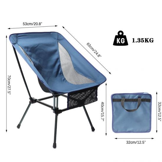 Elegant and novel folding chair, a blue folding chair, with its unique design and convenient functions, makes your leisure time more comfortable and comfortable. This folding chair not only has a beautiful and generous appearance, but also ensures excellent quality and long-lasting service life through careful production and the use of high-quality aluminum materials.