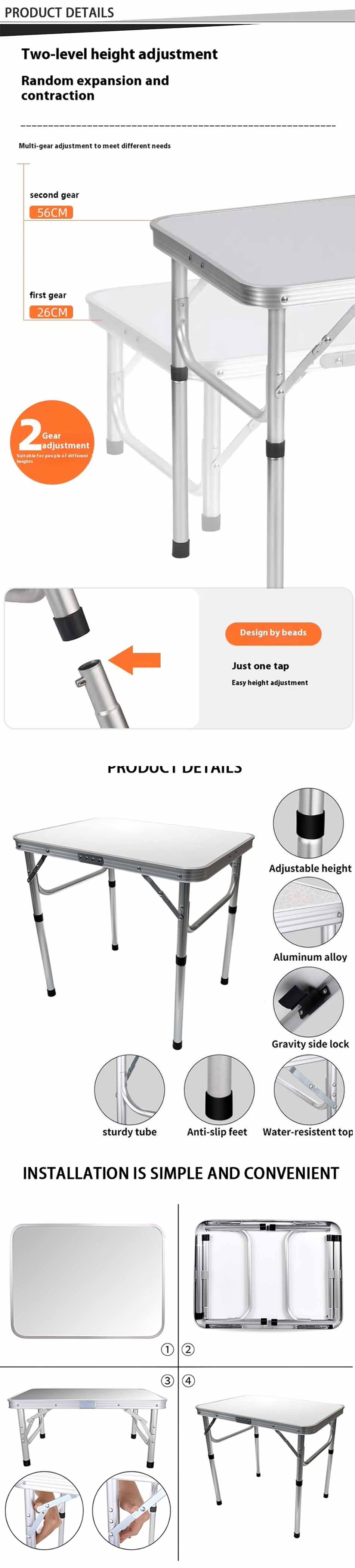 Designed for adventurers and casual outdoor enthusiasts alike, this outdoor adjustable lightweight portable aluminum folding table offers the perfect blend of convenience and durability. Crafted from rust-resistant aluminum, it stands up to sun, sand, and sudden splashes while remaining remarkably easy to carry. Its adjustable legs let you level the surface on uneven ground, and the foldable design packs flat into a compact size that slips into any backpack or car trunk. Whether you're camping, picnicking at the beach, tailgating, or simply setting up a backyard barbecue, this table provides a stable, low-maintenance spot for meals, games, or gear—ready whenever you are.