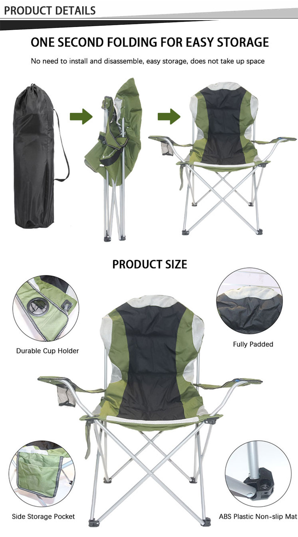 Brand: ANHUI FEISTEL FACTORY Relate Manufacturing: OEM & ODM Product: This portable camping chair features a lightweight, foldable design with durable construction and convenient side pockets, perfect for beach trips, camping, and outdoor relaxation.