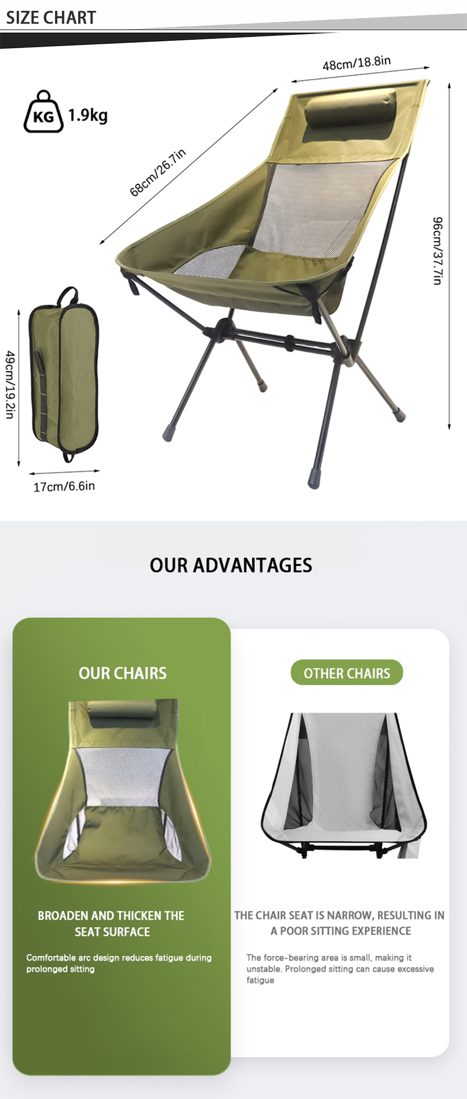 ProductThe outdoor breathable widened moon chair features a portable folding design with parallel bars and a supportive high back, offering comfort for camping, beach trips, and relaxation.