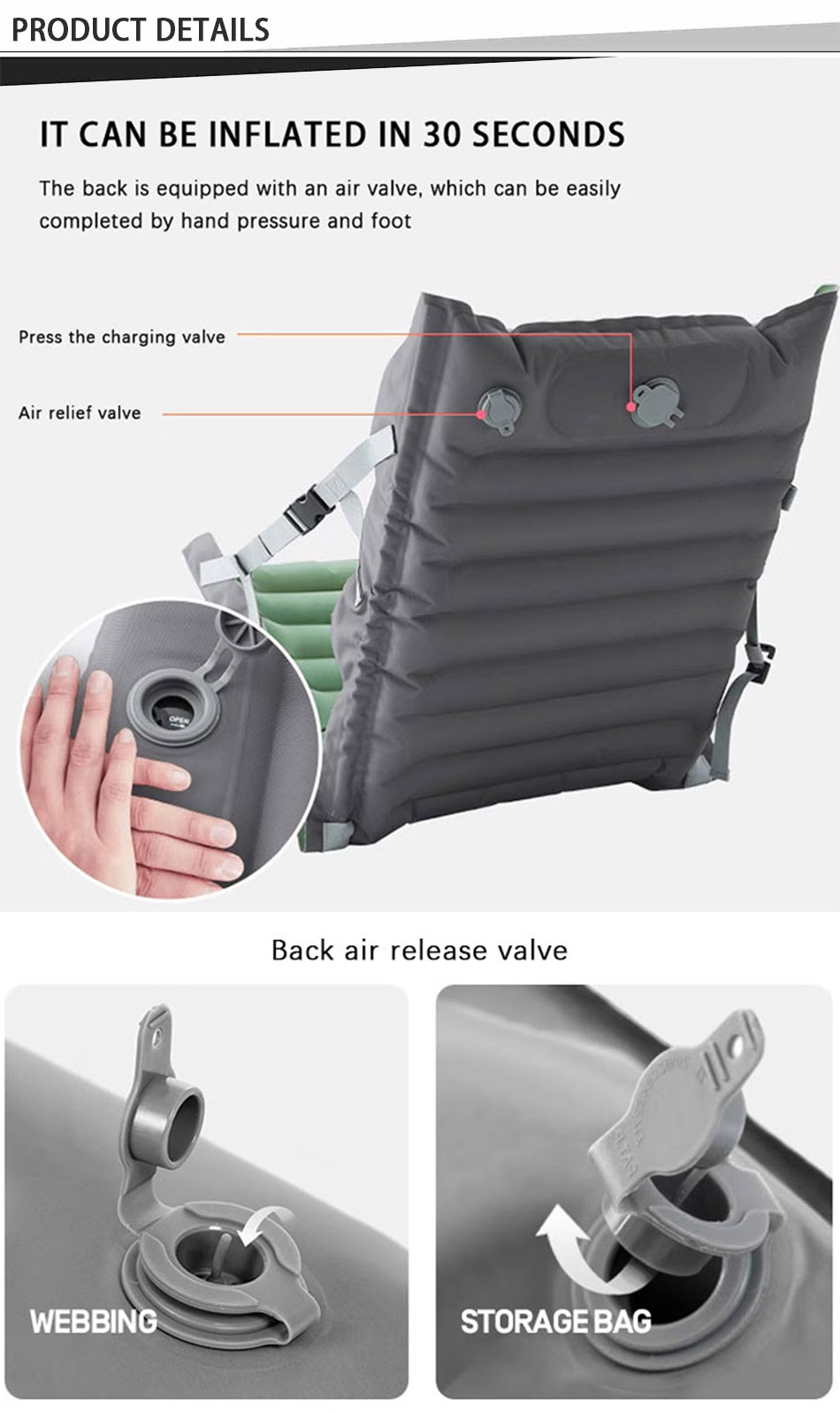 Product: The Outdoor Camping Adjustable Angle Beach Casual Portable Cushion Air Chair Sleeping Pad offers lightweight comfort, versatile reclining support, and compact portability for relaxing anywhere outdoors.