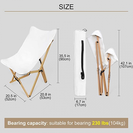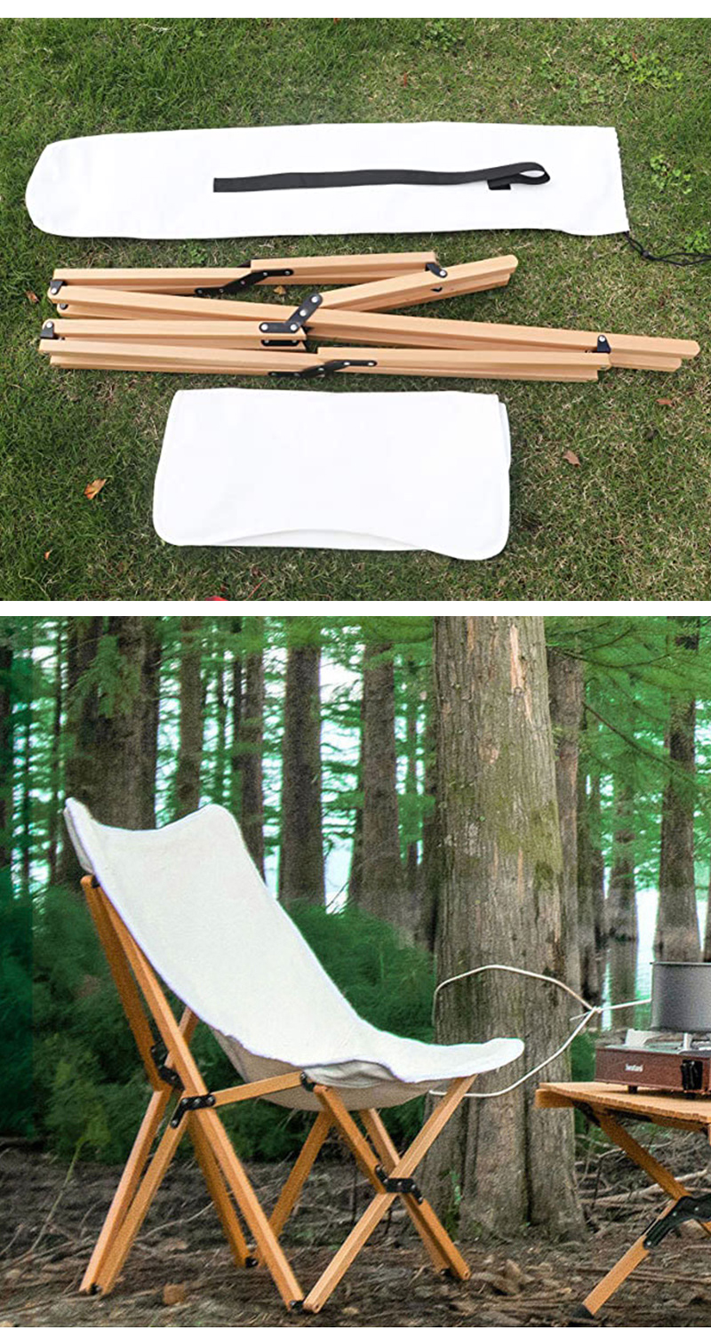 Outdoor folding beech chair, beach lounge wood chair for camping, backpacking picnic beach