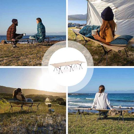 You will save more time and effort to enjoy your journey. Insert the 2 long support rods into both sleeves of the camping bed and make sure they are all the way to the top. Connect the 3 cross bars and mount them on the support bars. A camp bed that fits most people. 3 cross bars support the crib and keep it stable even when turned over. The off-the-ground design keeps you away from hard, wet ground and insects.