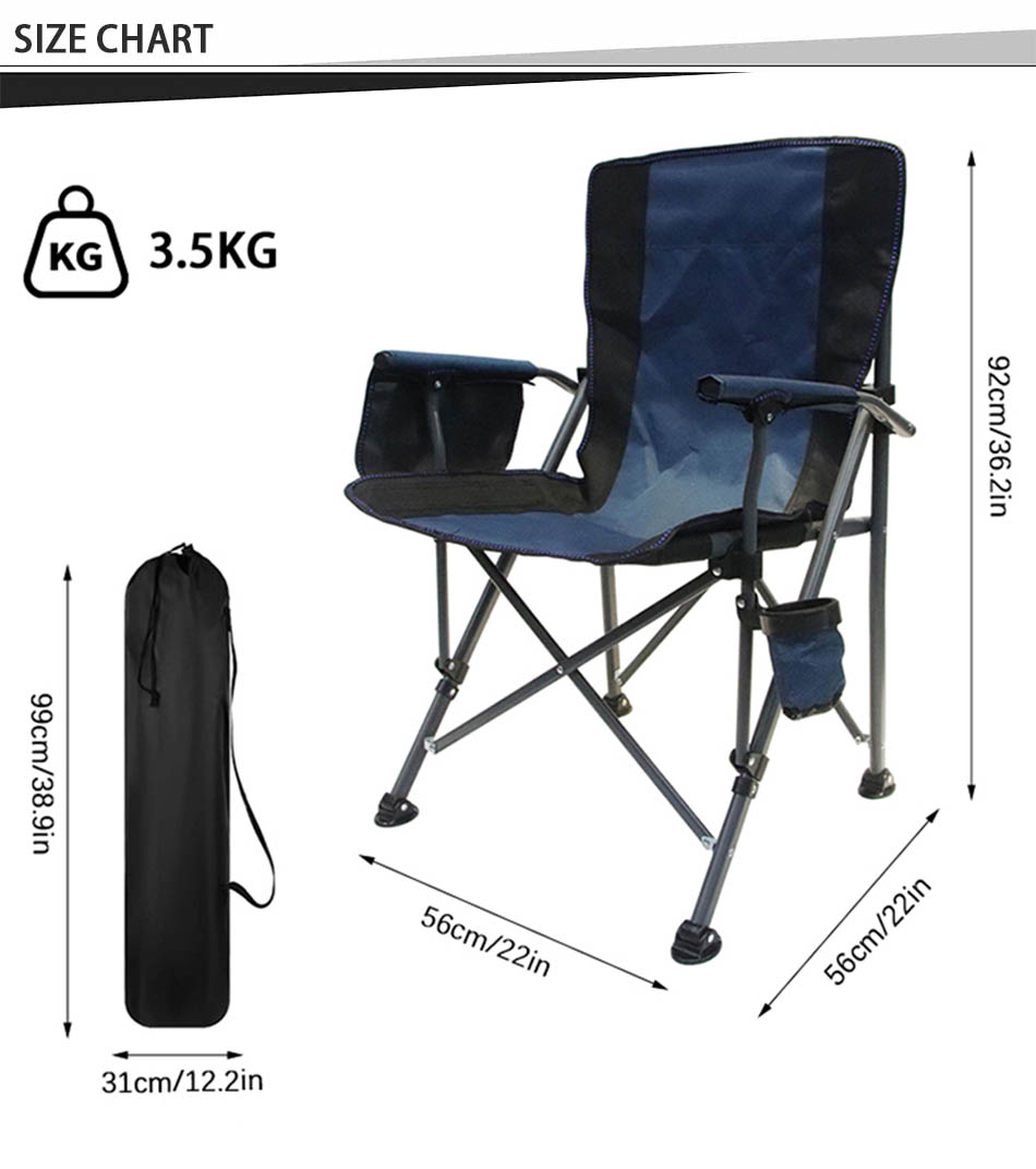 Product: This outdoor folding director's chair is designed with a large, spacious seat and a comfortably padded backrest, making it the perfect choice for leisure activities like car travel, camping trips, or simply relaxing outdoors.