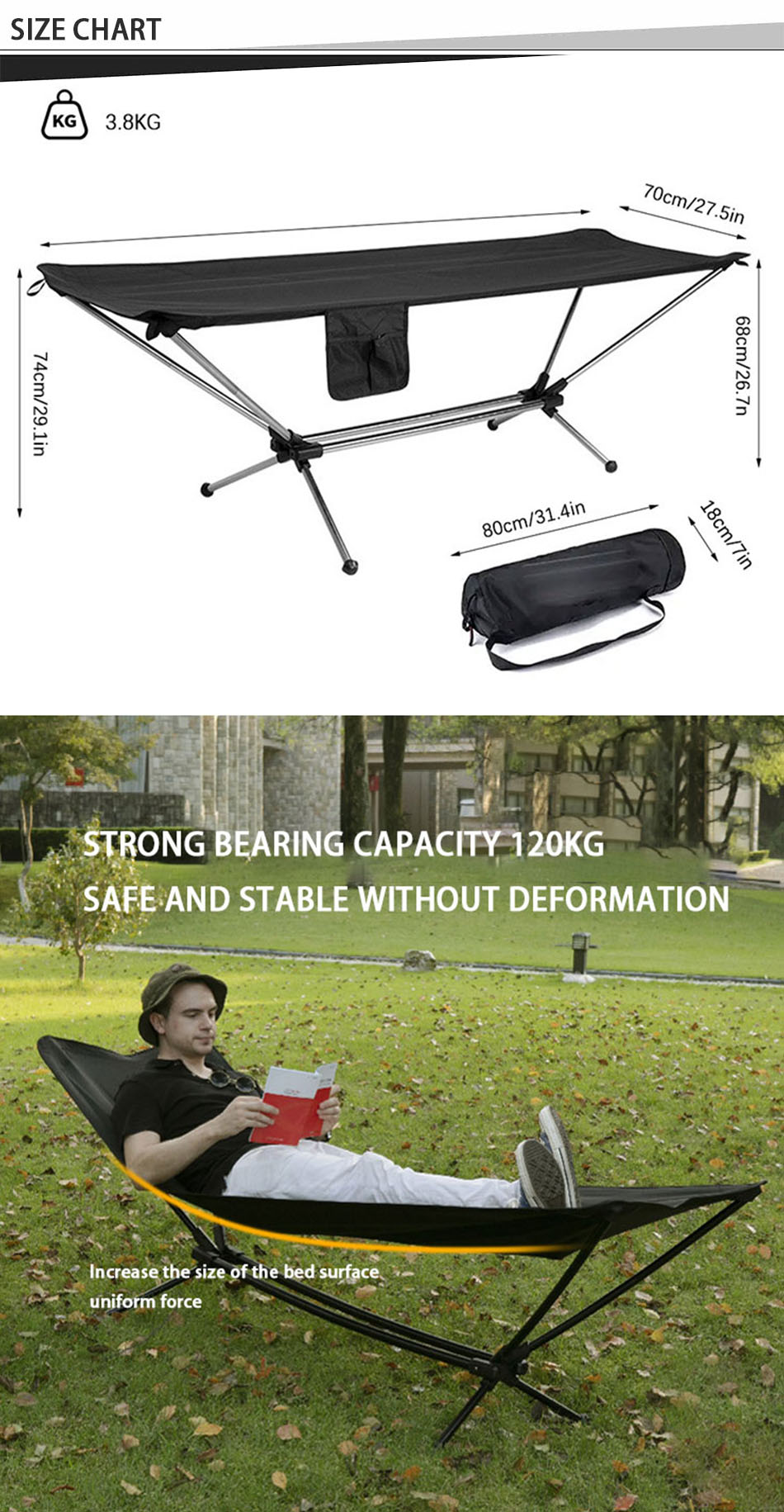 Product: This outdoor folding portable aluminum alloy lounge beach cot offers a lightweight, durable, and foldable design, providing comfortable relaxation for camping, beach trips, and outdoor adventures.