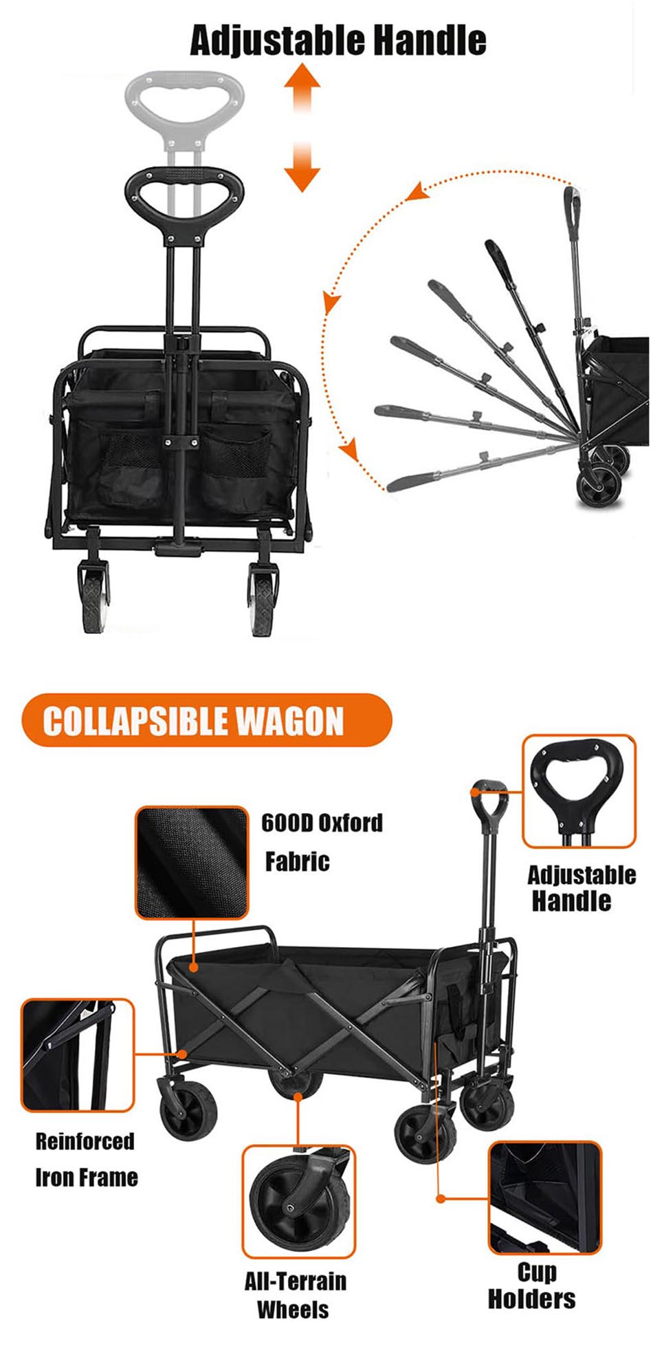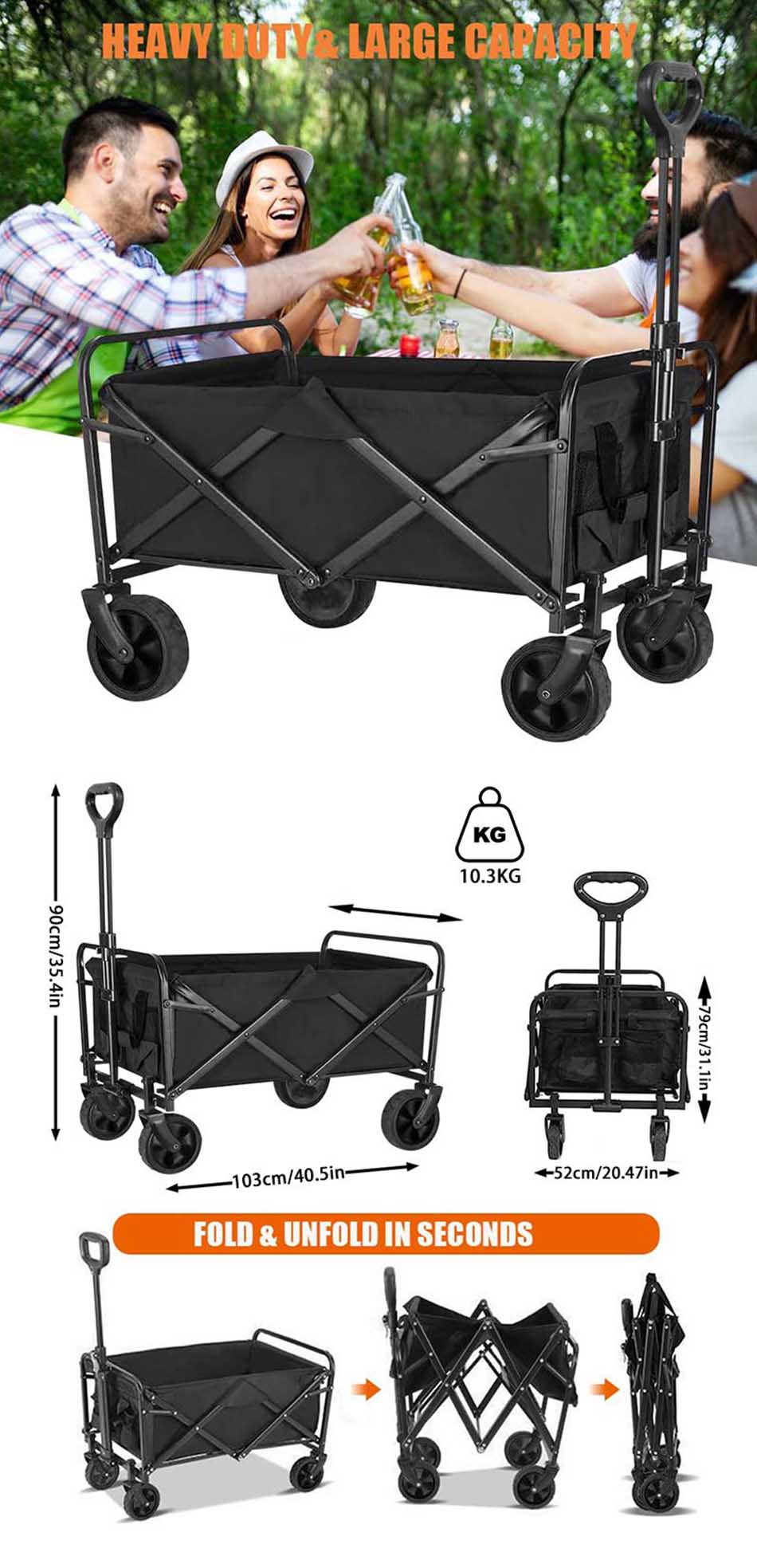 Product: This heavy-duty, collapsible utility wagon cart offers a large capacity for camping and beach trips, effortlessly hauling all your gear with durable construction and easy folding storage.