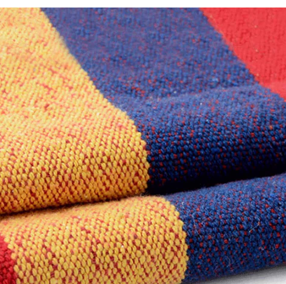 ProductDurable, breathable canvas hammock with vibrant stripes, perfect for outdoor relaxation. Easy to hang, ideal for garden or camping.