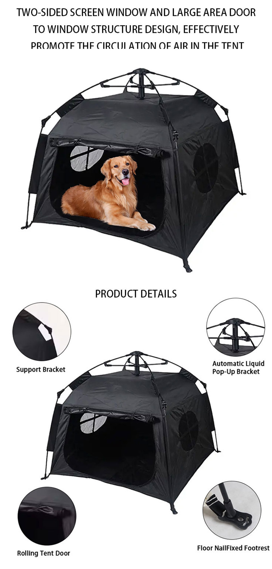 Product: This outdoor automatic folding dog kennel provides rainproof and sun protection, offering a portable, durable, and comfortable pet camping tent for outdoor adventures and household use.
