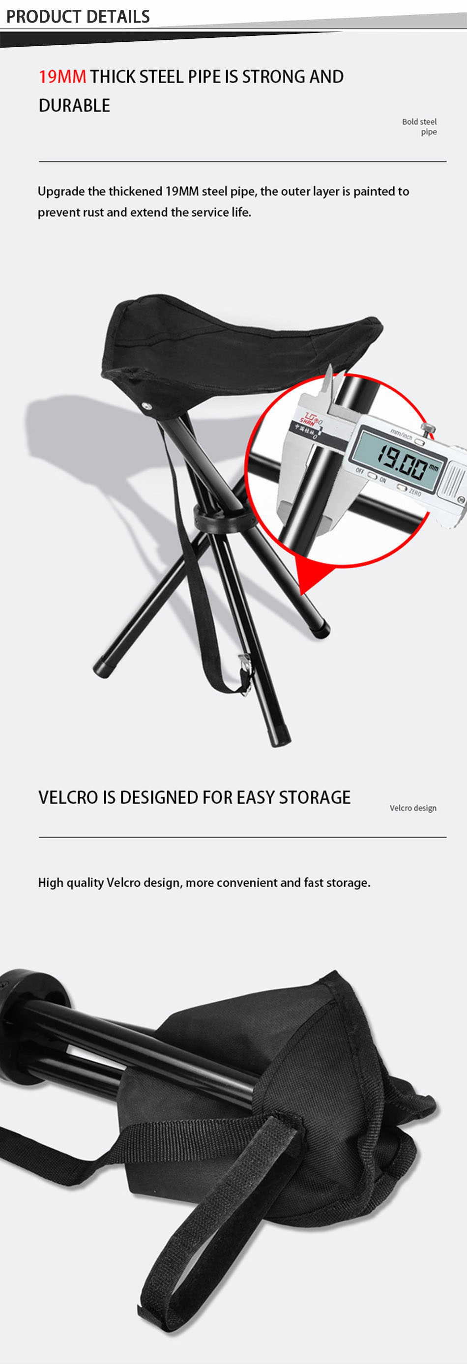 Product: This outdoor multifunctional metal portable mini lightweight camping stool features a modern triangle design with an Oxford fabric seat, perfect for fishing, hiking, and various outdoor activities.