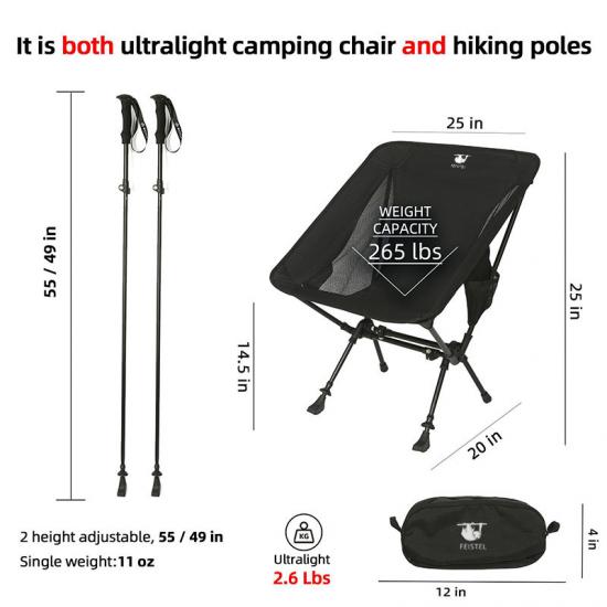 Rugged Design: This camping backpack chair has a lightweight and strong construction made of high-strength material, which is resistant to corrosion and oxidation.