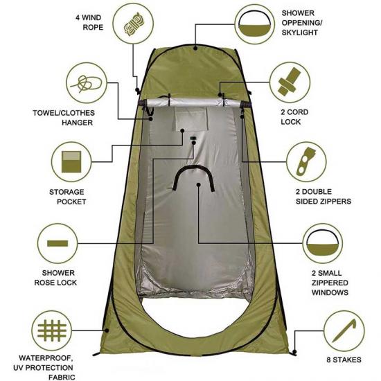 1.Q:How to confirm the product quality before placing orders? A: First of all, our quality control will reduce the quality problem to near zero.What's more, sample of the shower tent is available for you to test the quality.