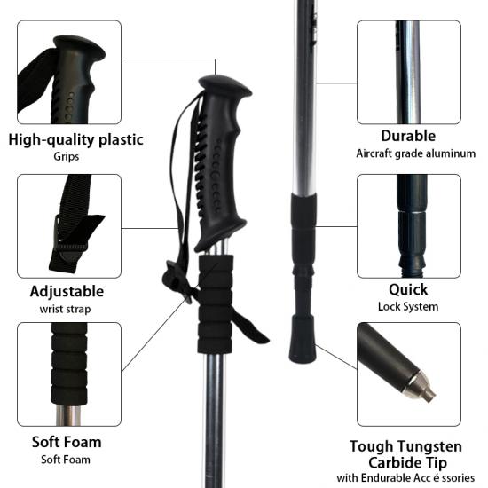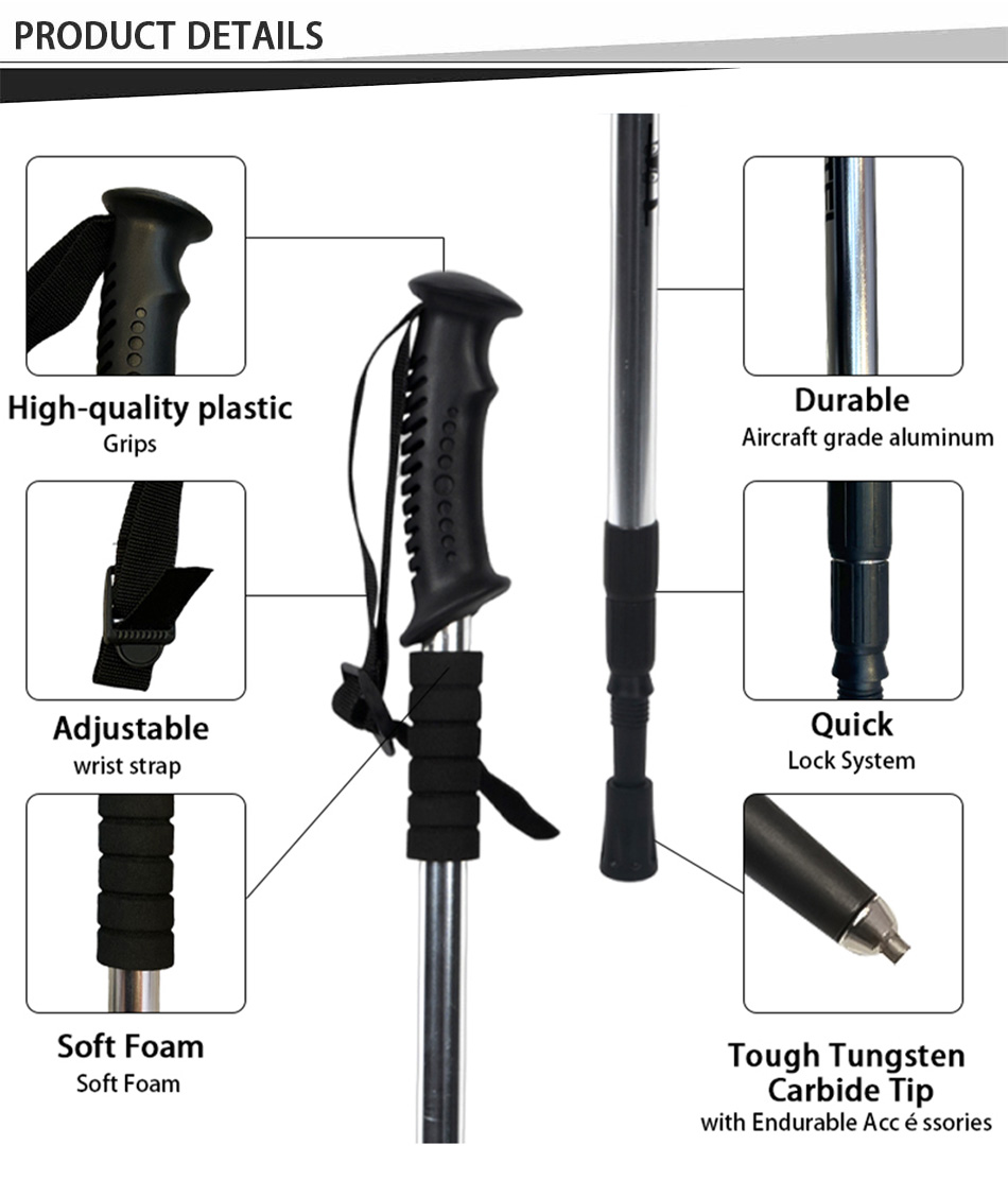 Hot Sell Aluminium 7075 Lightweight Hiking Walking Stick Trekking Poles
