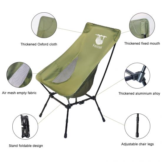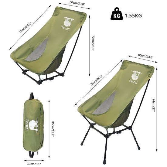 Brand: ANHUI FEISTEL FACTORY Relate Manufacturing: OEM & ODM Product: High Back Ultralight Camping Chair with Carry Bag, perfect for outdoor adventures, providing comfort, durability, and easy portability.