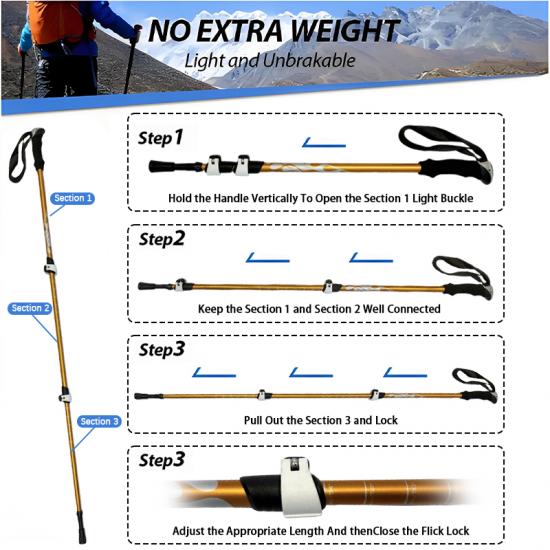 Hot Sell Aluminium 7075 Lightweight Hiking Walking Stick Trekking Poles