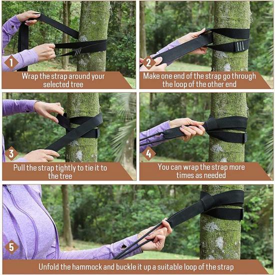 Adjustable Tree Friendly Straps: Each strap is 10 feet long and has 18 + 1 loops that allow you to easily lock your carabiner into a loop that adjusts for perfect height and comfort. No knots are needed and no damage to the tree.