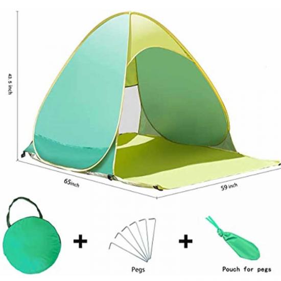 Pop-up design-Easy to install and fold: Automatically pops out, no need to assemble in 3 seconds. The beach shade comes in a carry bag, so it's easy to set up and fold. Quickly set up and fold to give you more time to relax on the beach with your friends and family. UPF 50+ Sunscreen: Made of 190T silver-plated fabric, this baby beach tent protects you and your kids on the beach from harmful sun rays all day long. Also, the waterproof fabric design can provide a temporary shelter in the event of light rain, so avoid using the sunshade in heavy rain.