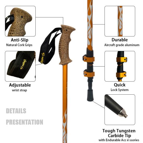 Hot Sell Aluminium 7075 Lightweight Hiking Walking Stick Trekking Poles