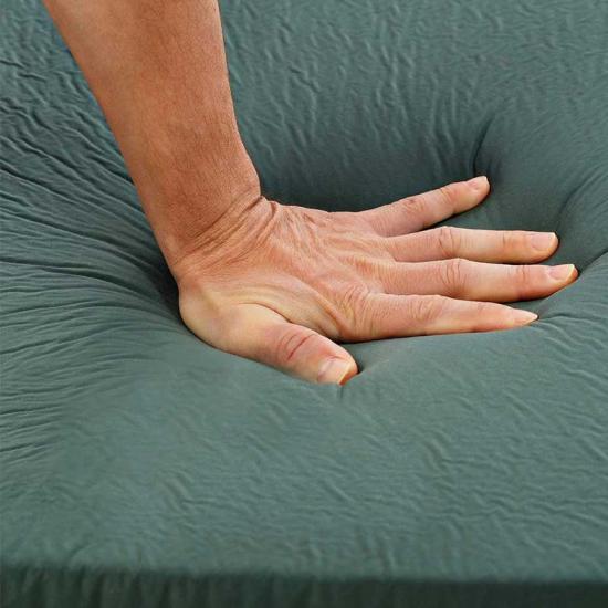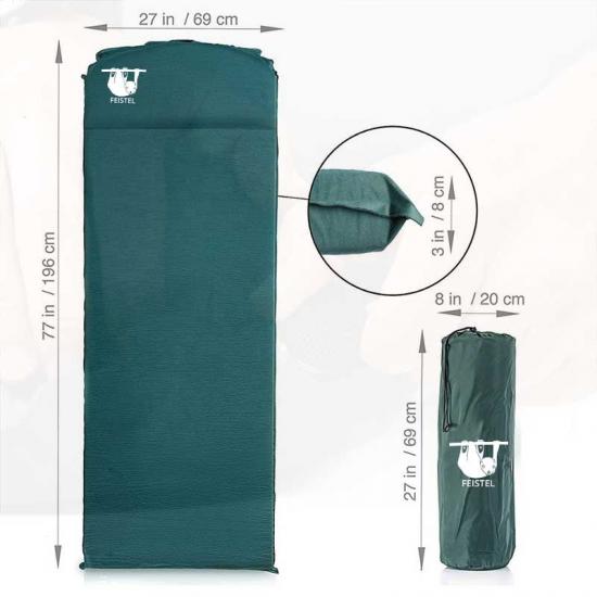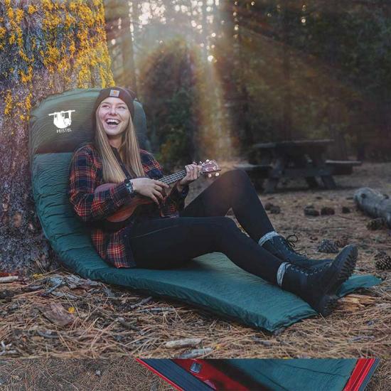 The raw material of the self-inflating sleeping pad is polyester pongee with more tear-resistant fabric, which means the camping pad is more durable and could make your body comfortable and stable when you are sleepy. What’s more, The camping pad will protect you from the underground stones and branches.It’s the strong and best choice as a camping gear. And as a good pad, it’s won’t wrinkle or squeak after using.