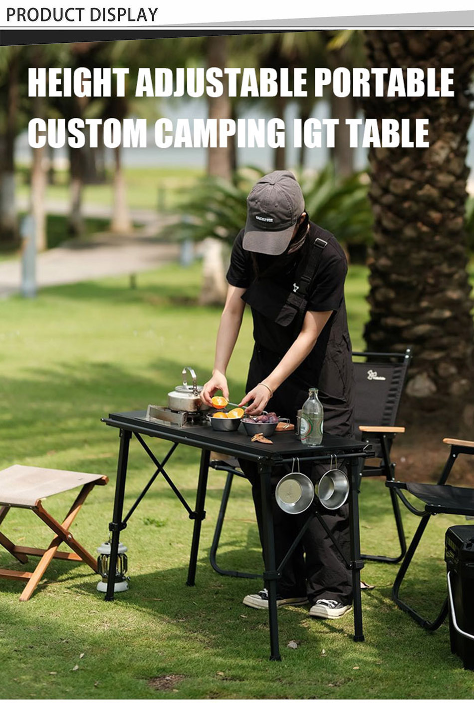 Brand: ANHUI FEISTEL FACTORY Relate Manufacturing: OEM & ODM Product: Foldable customized IGT aluminum camping table, offering free combination and portability, perfect for outdoor use with adjustable configurations to fit your camping needs.