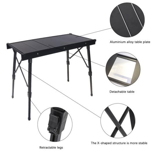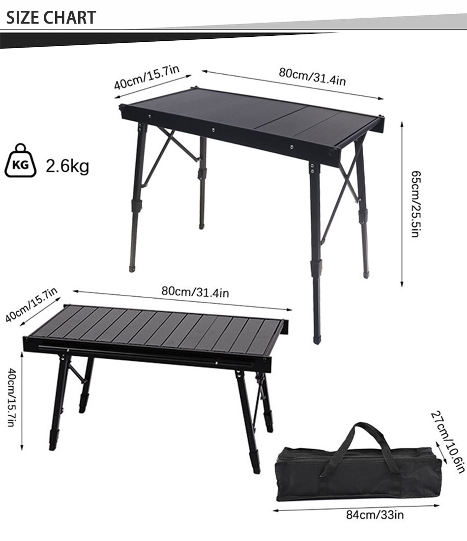 Outdoor Height Adjustable Lightweight Aluminum Folding Camping Table