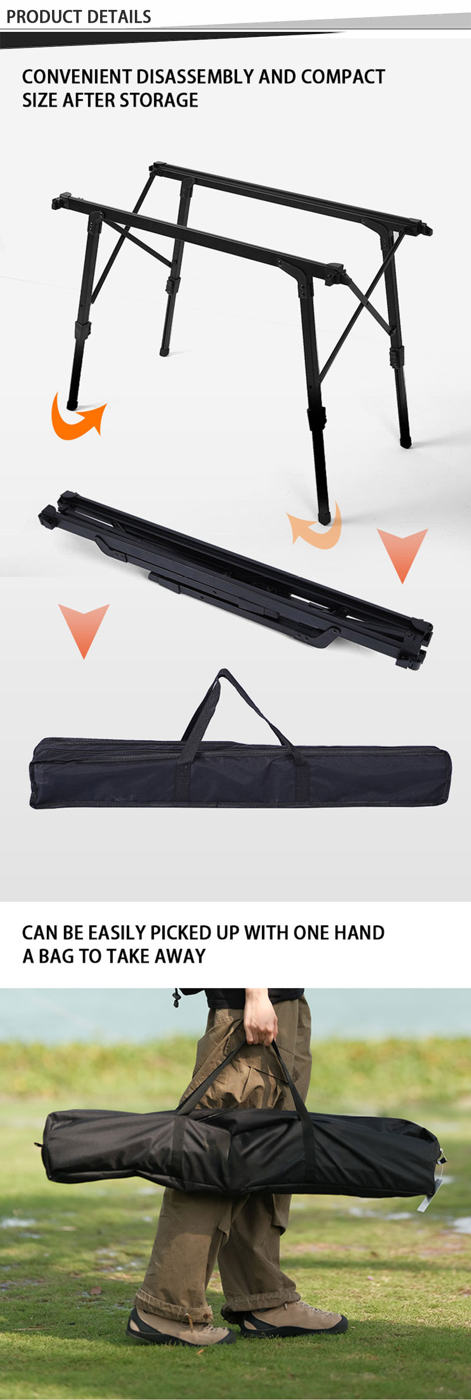 Brand: ANHUI FEISTEL FACTORY Relate Manufacturing: OEM & ODM Product: A portable, lightweight aluminum camping table with adjustable height, ideal for outdoor activities such as picnics, BBQs, and camping. Easy to fold and carry.