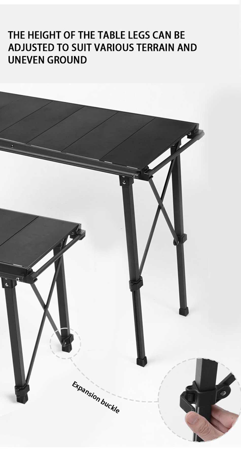 The Portable Multifunctional Metal Folding Table Modern Outdoor Camping BBQ Egg Roll Table is a durable and versatile solution for outdoor adventures, picnics, and barbecues. Crafted from high-quality metal, it provides excellent stability and support while remaining lightweight and easy to carry. Its unique egg roll-style folding design allows for quick setup and compact storage, making it highly portable for camping, hiking, and travel. The spacious tabletop offers ample room for food preparation, cooking equipment, or dining, ensuring convenience in any outdoor setting. With weather-resistant and easy-to-clean surfaces, this table guarantees long-lasting use. Whether for BBQs, camping, or backyard gatherings, this modern folding table delivers functionality, durability, and a stylish design for all outdoor occasions.