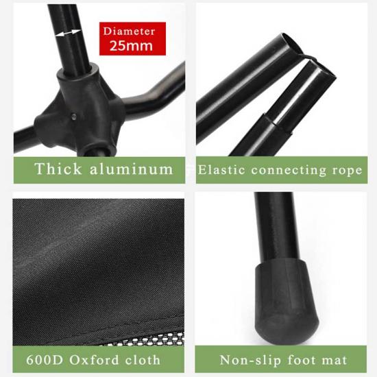 MaterialHigh high-grade, 600D cationic fabric and breathable mesh, light and durable aluminum frame.