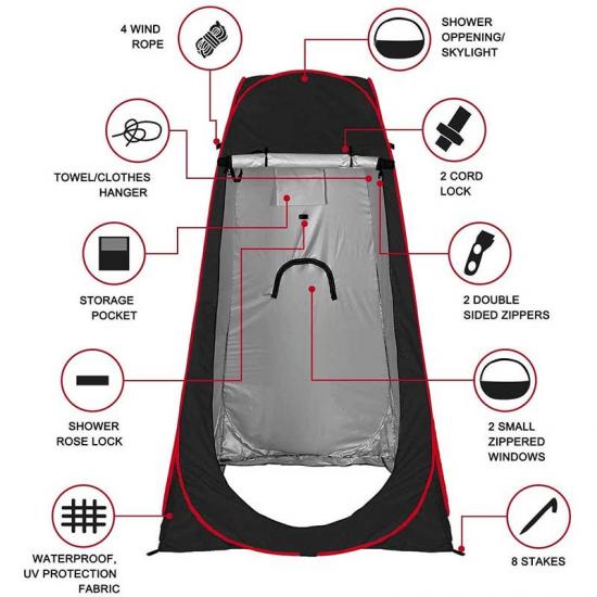 Multi-purpose pop-up design - Easy to open and close in seconds, no assembly required. WolfWise Privacy Tennts offer a dedicated space for boat use, camping showers and more. It's also great for road trips, outdoor walks, playground equipment, kids' dance competitions, clothes vending machines, and more.