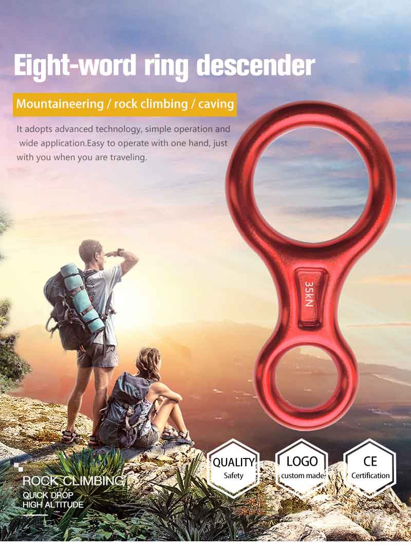 3) The principle of the eight-ring ring is based on the friction between the rope and the lowering device, which slows down the speed of descent.