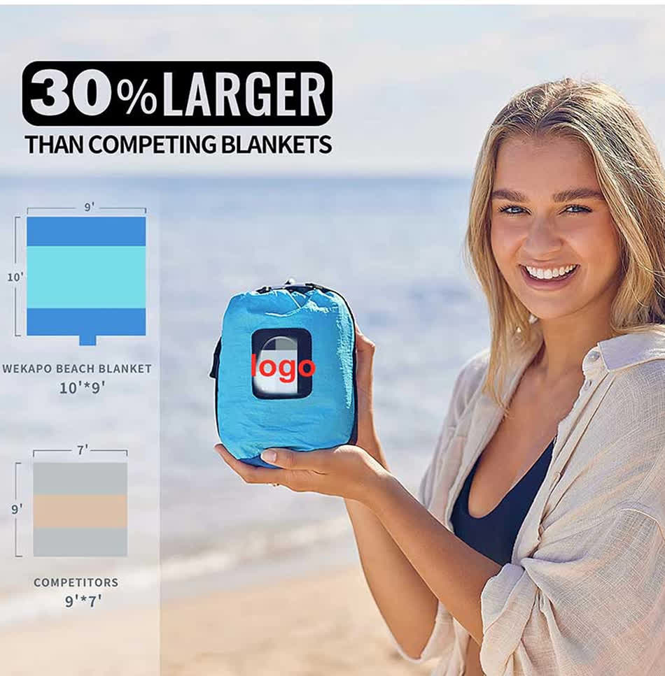 Custom Logo Oversized Silky Soft Sand Proof Beach Blanket For Travel
