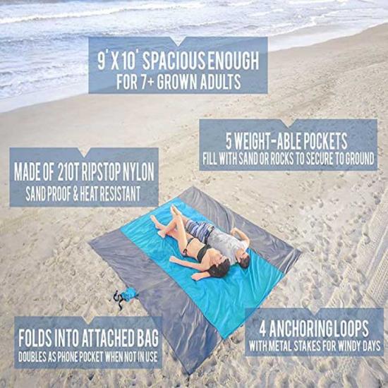 Extra Large Waterproof Sandproof Foldable Compact Beach Blanket