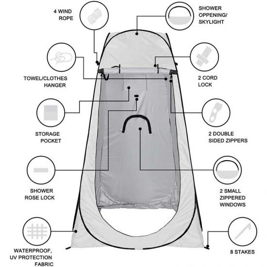 Multi-purpose pop-up design - Easy to open and close in seconds, no assembly required. WolfWise Privacy Tennts offer a dedicated space for boat use, camping showers and more. It's also great for road trips, outdoor walks, playground equipment, kids' dance competitions, clothes vending machines, and more.