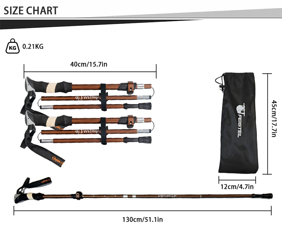 Brand: ANHUI FEISTEL FACTORY Relate Manufacturing: OEM & ODM Product: Lightweight, durable 7075 aluminum trekking poles with foldable design, improving stability, balance, and reducing strain on challenging hikes.