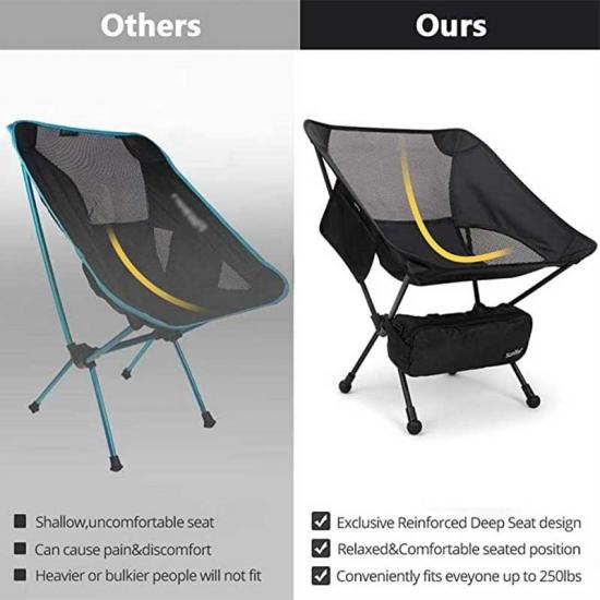 With the design of exclusive reinforced deep seat design, the moon chair  make the seat position more relaxing and comfortable Sit back and enjoy campfires, outdoor festivals, sporting events and more instantly. Used in conjunction with a sand cover to increase foot area so that it does not sink into sand or loose ground. The multifunctional design of the chair allows you to attach not only a bag, but also a backpack, motorcycle, etc.With this chair, you can now enjoy the comfort of home anywhere.