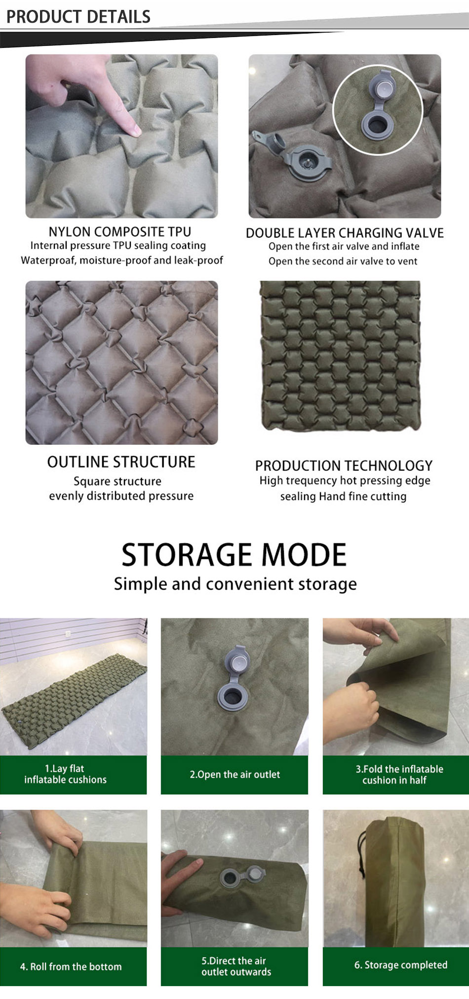 Brand: ANHUI FEISTEL FACTORY Relate Manufacturing: OEM & ODM Product: Durable, waterproof, ultralight sleeping pad ideal for camping and backpacking; ensures comfort, insulation, and easy portability in outdoor adventures.