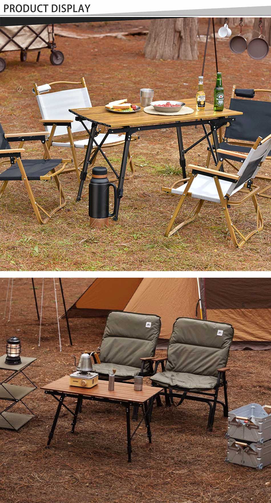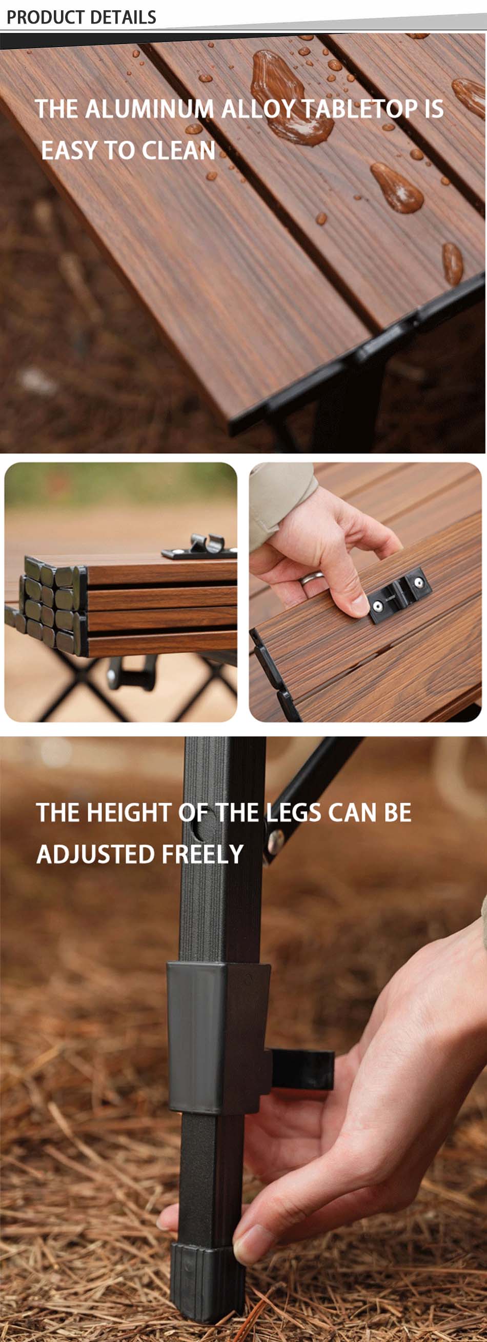 Brand: ANHUI FEISTEL FACTORY Relate Manufacturing: OEM & ODM Product: A lightweight, portable folding table with a stable triangle design, ideal for camping, featuring an egg roll wooden top for easy setup and storage.