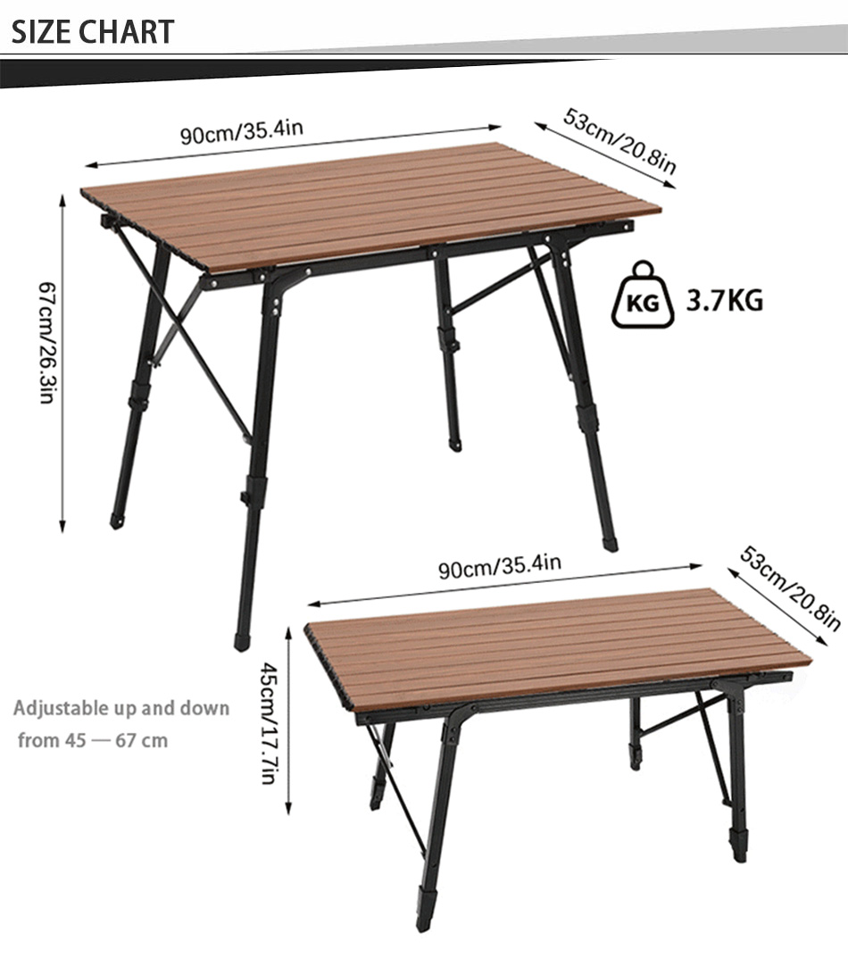 Outdoor Height Adjustable Lightweight Aluminum Folding Camping Table