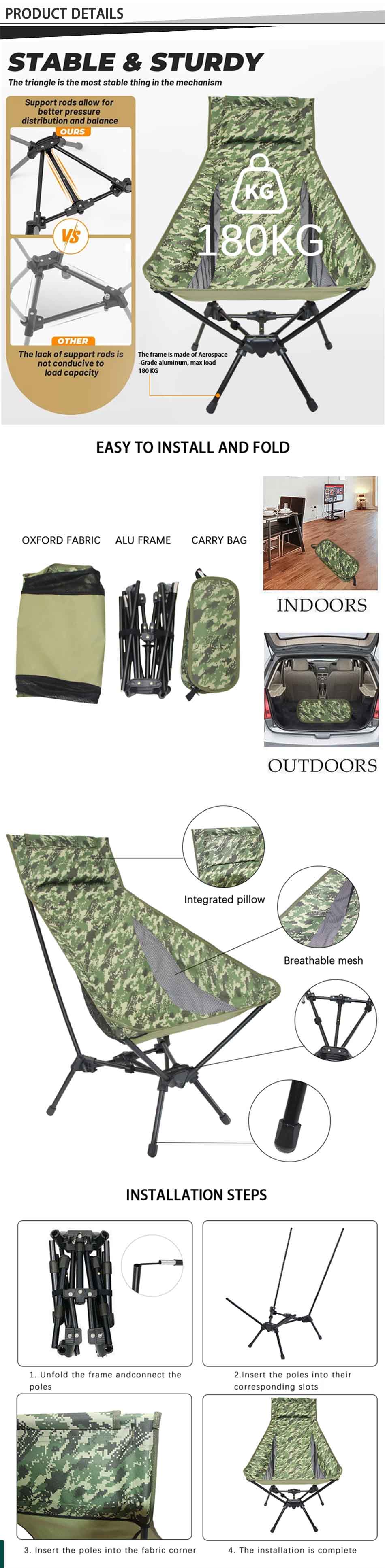 Lightweight Folding Portable Aluminum Camp Chair Outdoor Moon Camping Chair