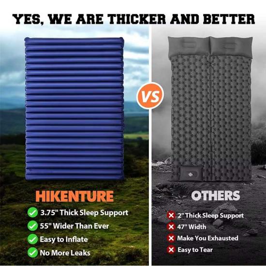 Brand: ANHUI FEISTEL FACTORY Relate Manufacturing: OEM & ODM Product: Portable double sleeping mat with built-in air pillow, easy inflation, lightweight, compact, perfect for camping, hiking, and backpacking.