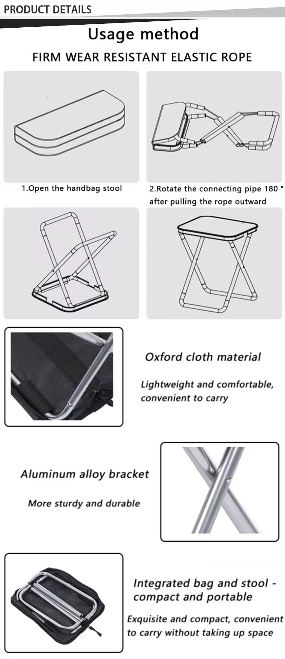 Its durable construction ensures reliability, and it can be easily folded for storage when not in use. The inclusion of a handbag adds extra functionality, allowing you to carry essentials while keeping your hands free. Overall, it's a practical and handy accessory for outdoor adventures.