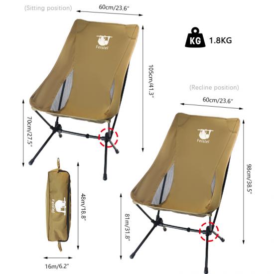 Brand: ANHUI FEISTEL FACTORY Relate Manufacturing: OEM & ODM Product: High Back Ultralight Camping Chair with Carry Bag, perfect for outdoor adventures, providing comfort, durability, and easy portability.