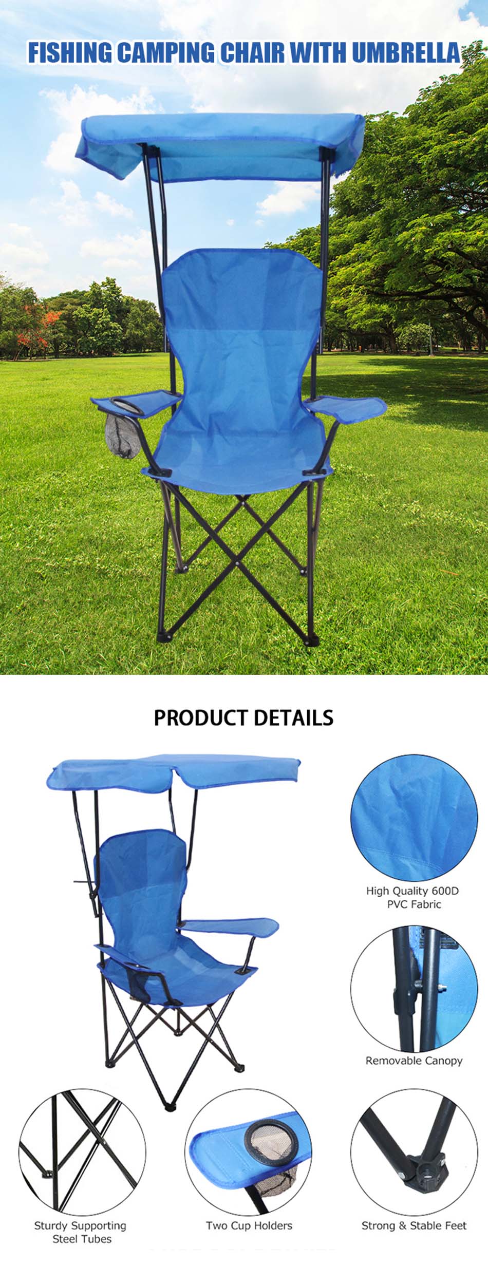 Camping Foldable Fishing Chair with Cup Holder Sunshade