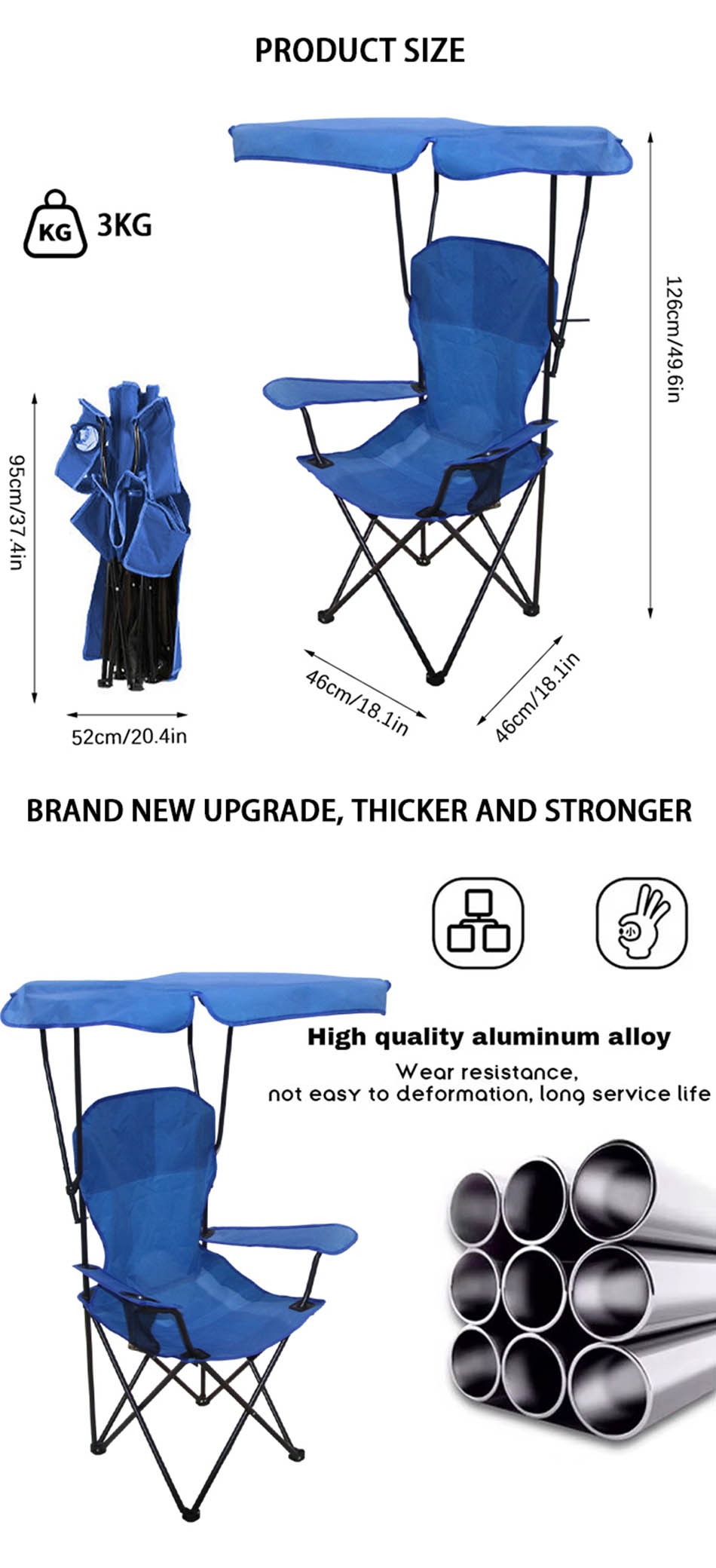 ProductThis versatile camping foldable fishing chair with cup holder and sunshade offers superior comfort and protection, keeping your drink secure while shielding you from harsh rays during long outdoor adventures.