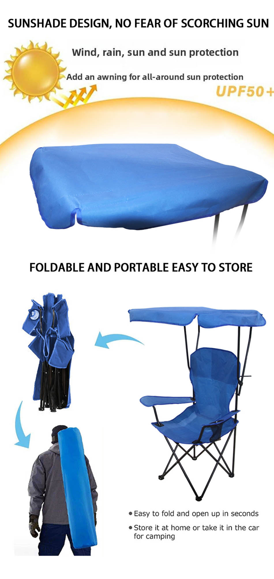 This Camping Foldable Fishing Chair with Cup Holder Sunshade is the ultimate outdoor companion for anglers and campers who refuse to compromise on comfort. Designed with a built-in adjustable sunshade canopy, it keeps you cool and protected from harsh UV rays during long hours by the water or at the campsite. The integrated cup holder securely holds your favorite beverage or fishing bait within easy reach, while the sturdy yet lightweight frame folds down compactly for effortless transport and storage. Whether you're casting a line, relaxing by the fire, or cheering at a sporting event, this chair offers reliable support, shade, and convenience in one portable package.